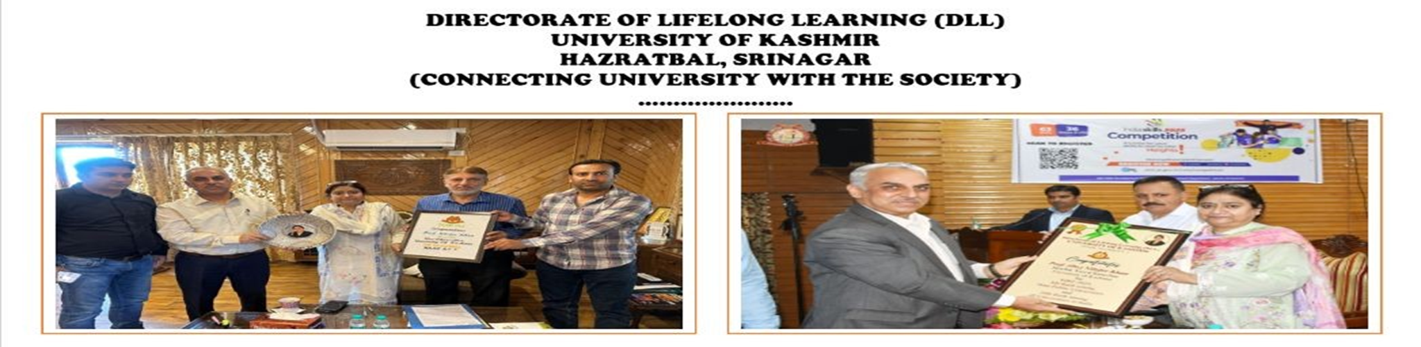 The Directorate of Lifelong Learning (DLL), earlier known as Centre for Adult Continuing Education & Extension (CACEE) established in 1978 with academic status under the University of Kashmir facilitates to bring the change in the lives of the common masses of the region by providing professional, vocational, skill based and job oriented courses, workshops, trainings, seminars, sensitization cum awareness programmes etc. The Directorate endeavors to renew the relevance, interest and economic potential of youth through its vision. Our thrust is also to enable youth to set the income generat